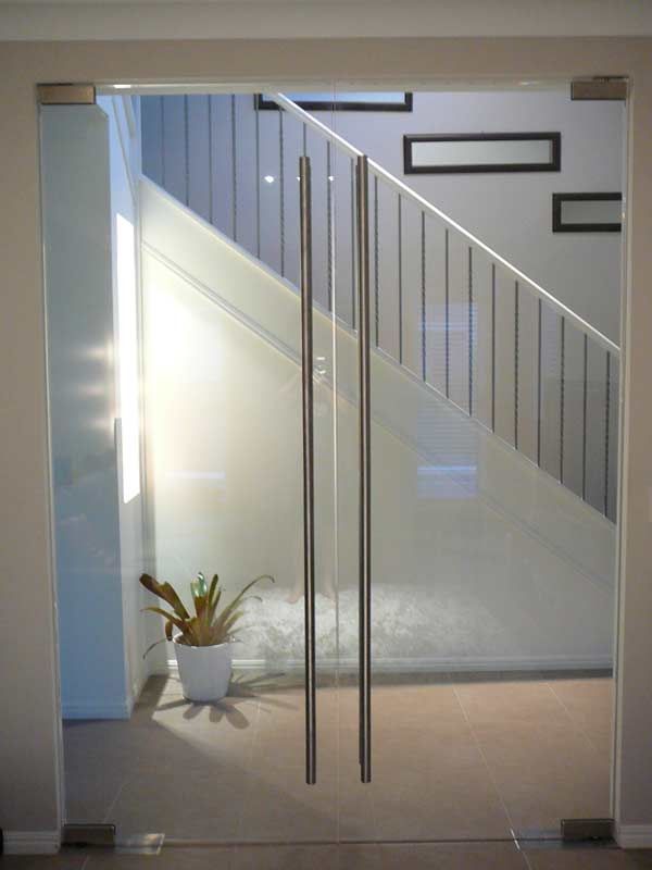 Противопожарная безрамная дверь со стеклом в частный дом в Люберцах